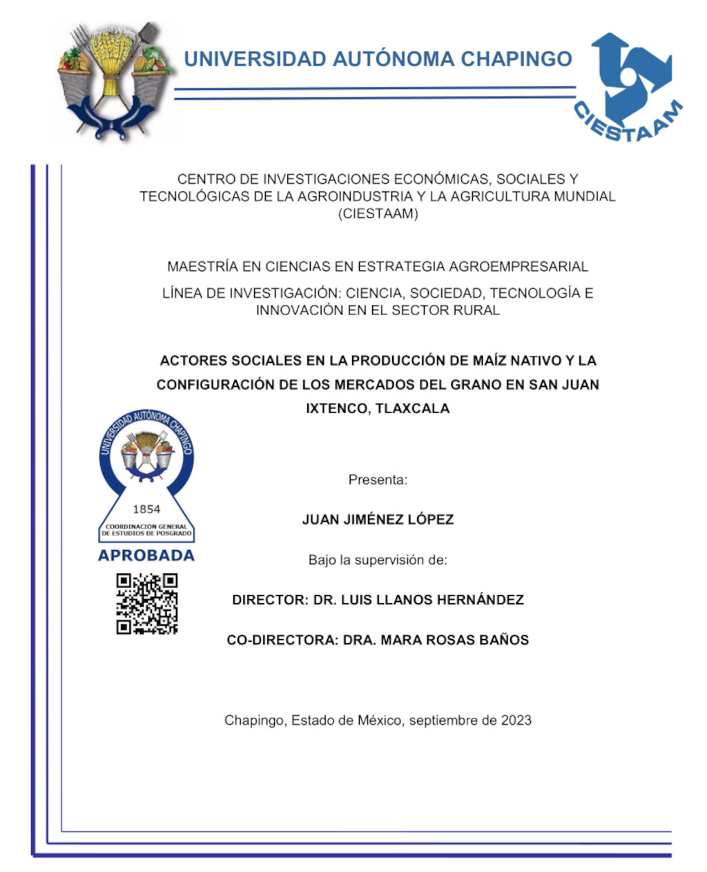 Tesis (Maestría en Ciencias en Estrategia Agroempresarial)