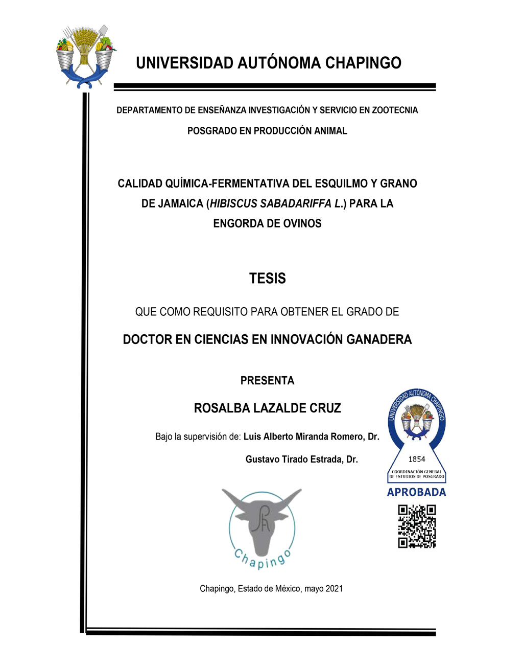 Tesis (Doctorado en Ciencias en Innovación Ganadera)