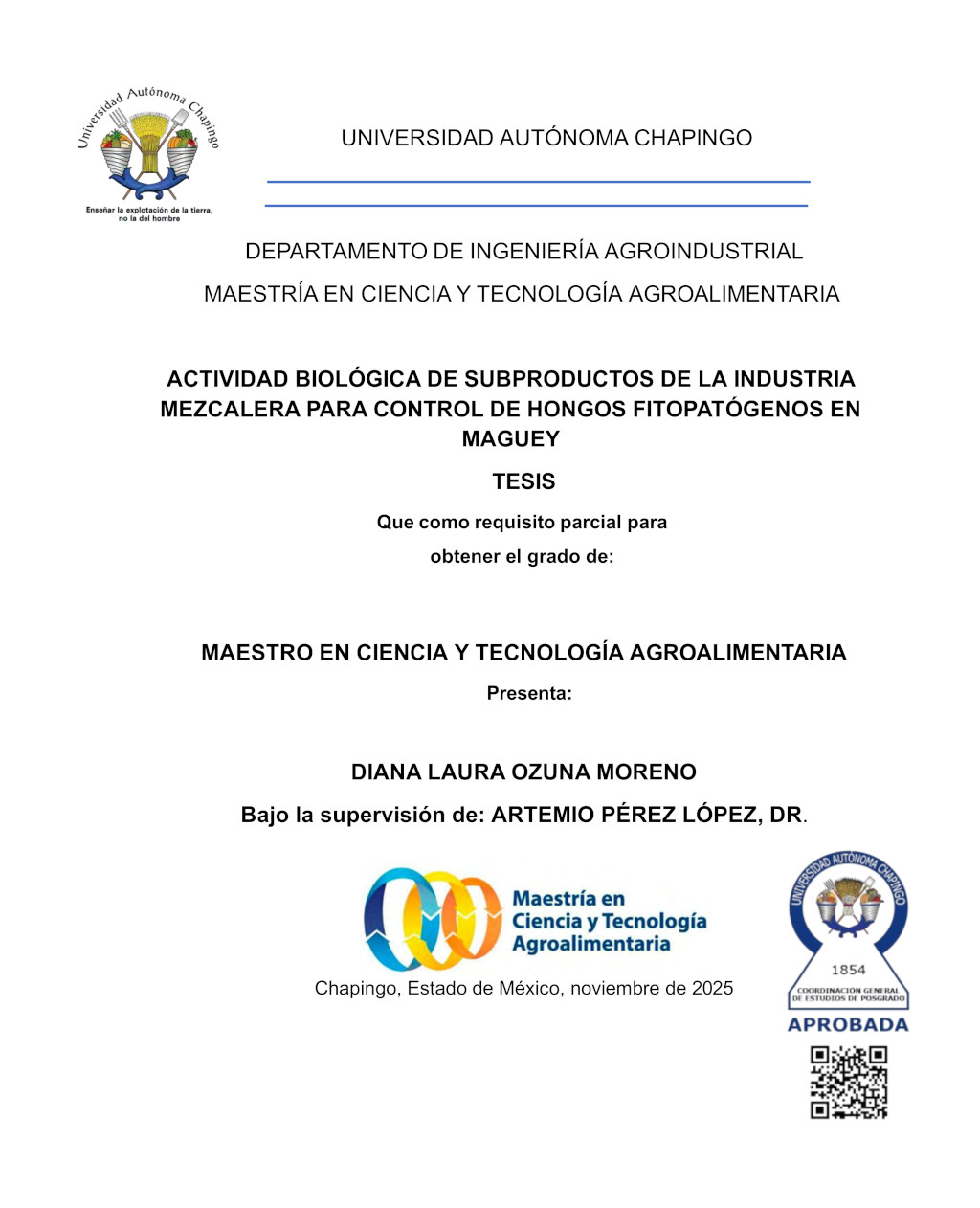 Actividad biológica de subproductos de la industria mezcalera para control de hongos fitopatógenos en maguey
