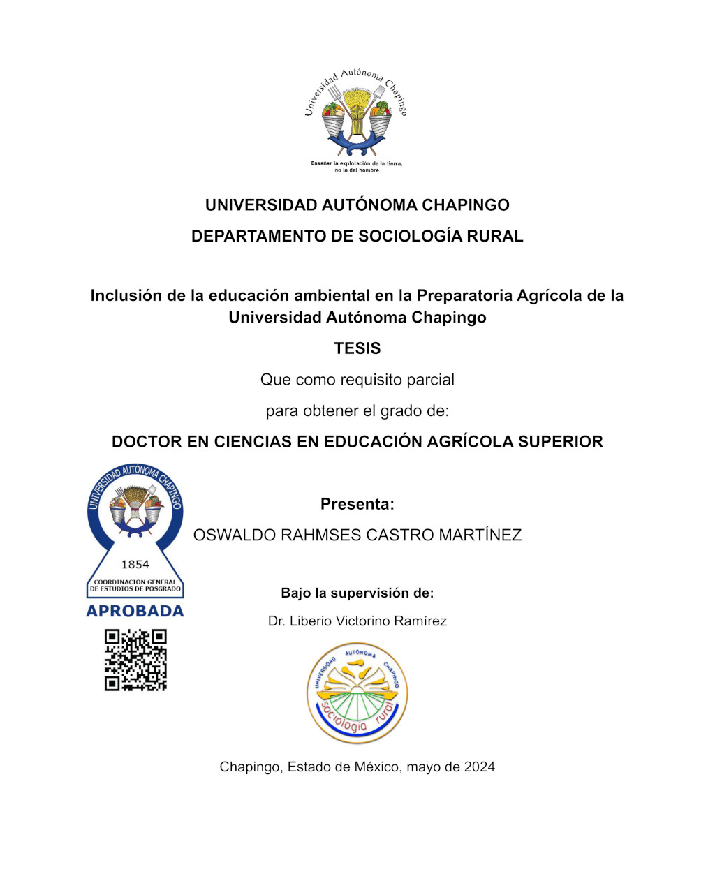 Tesis (Doctorado en Ciencias en Educación Agrícola Superior)