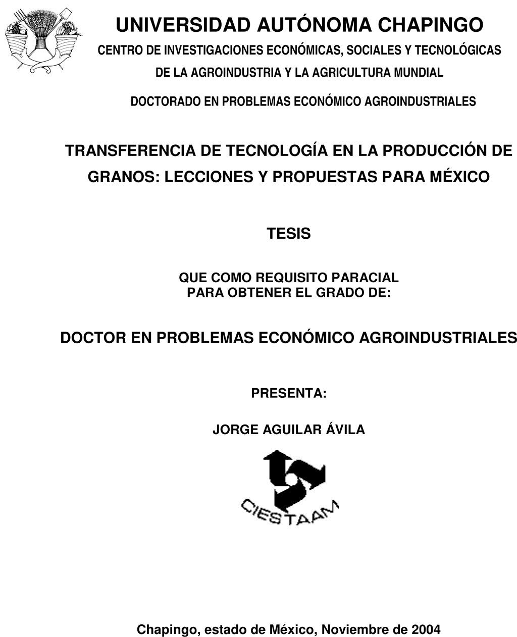 Tesis (Doctorado en Problemas Económico Agroindustriales)