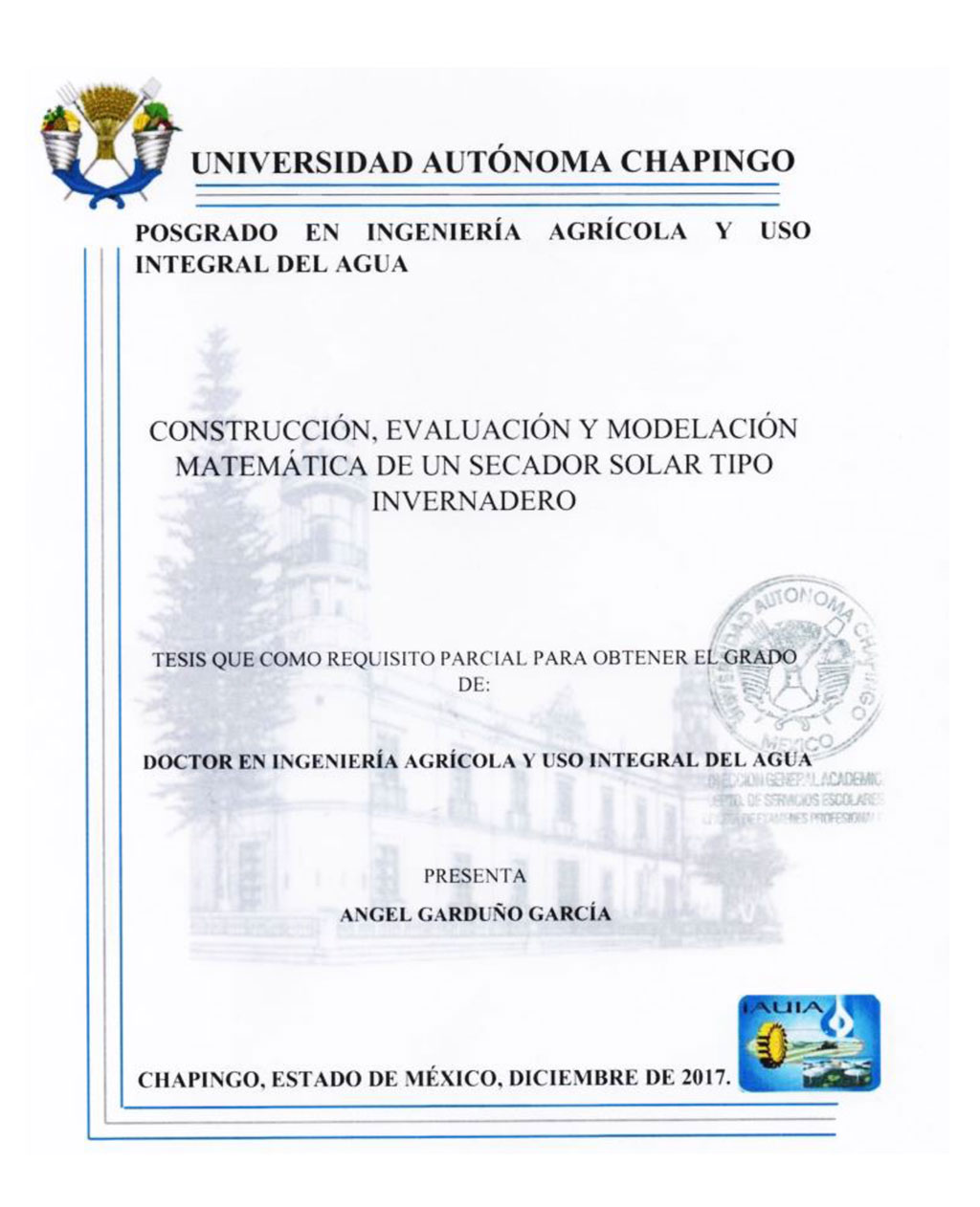 Construcción, evaluación y modelación matemática de un secador solar tipo invernadero