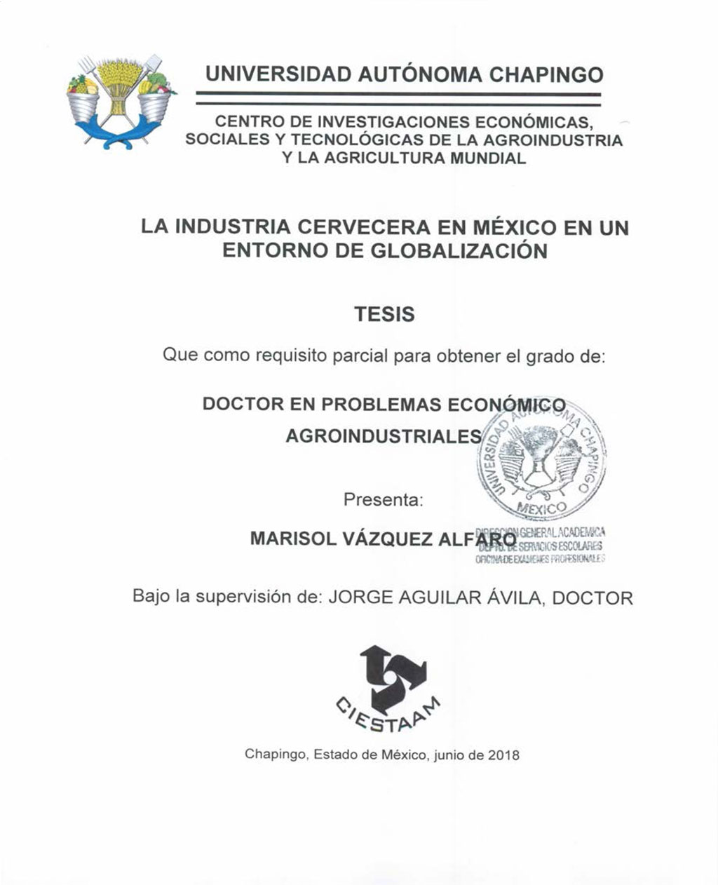 Tesis (Doctorado en Problemas Económico Agroindustriales)