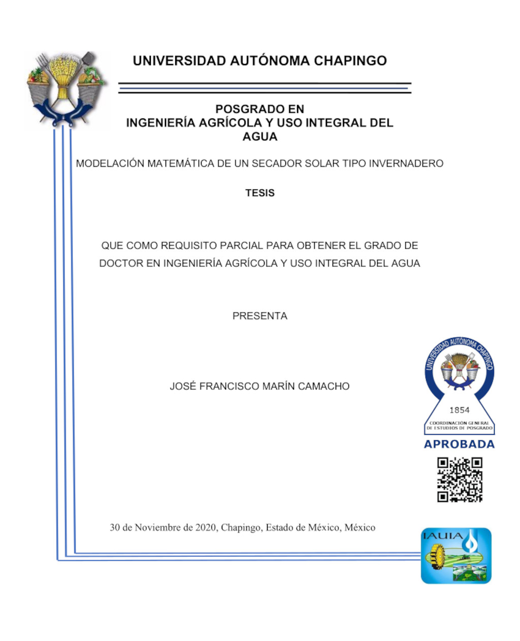 Tesis (Doctorado en Ingeniería Agrícola y Uso Integral del Agua)
