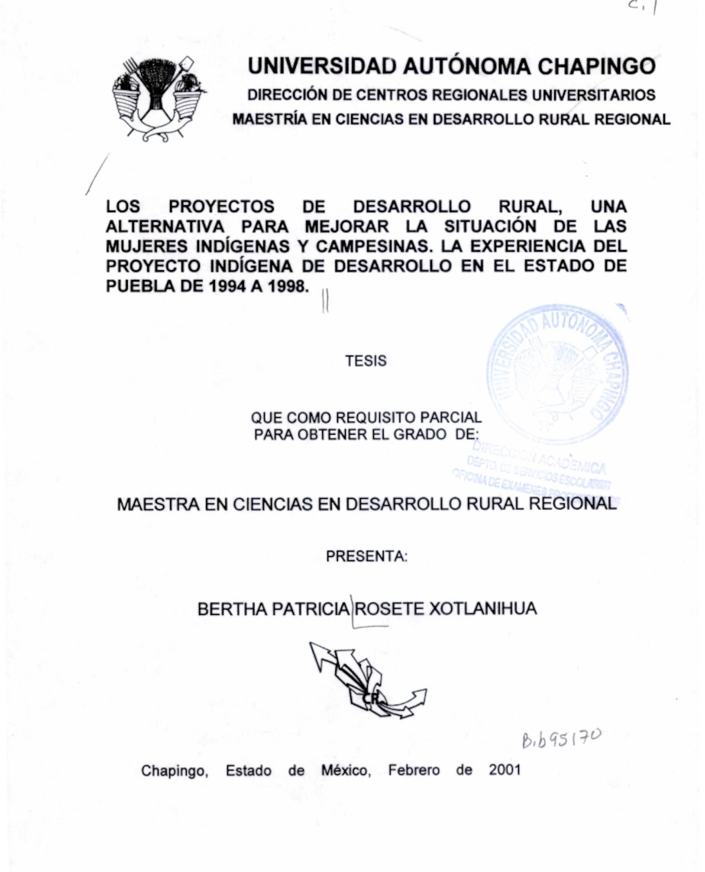 Los proyectos de desarrollo rural, una alternativa para mejorar la situación de las mujeres indígenas y campesinas. La experiencia del proyecto indígena de desarrollo en el Estado de Puebla de 1994 a 1998