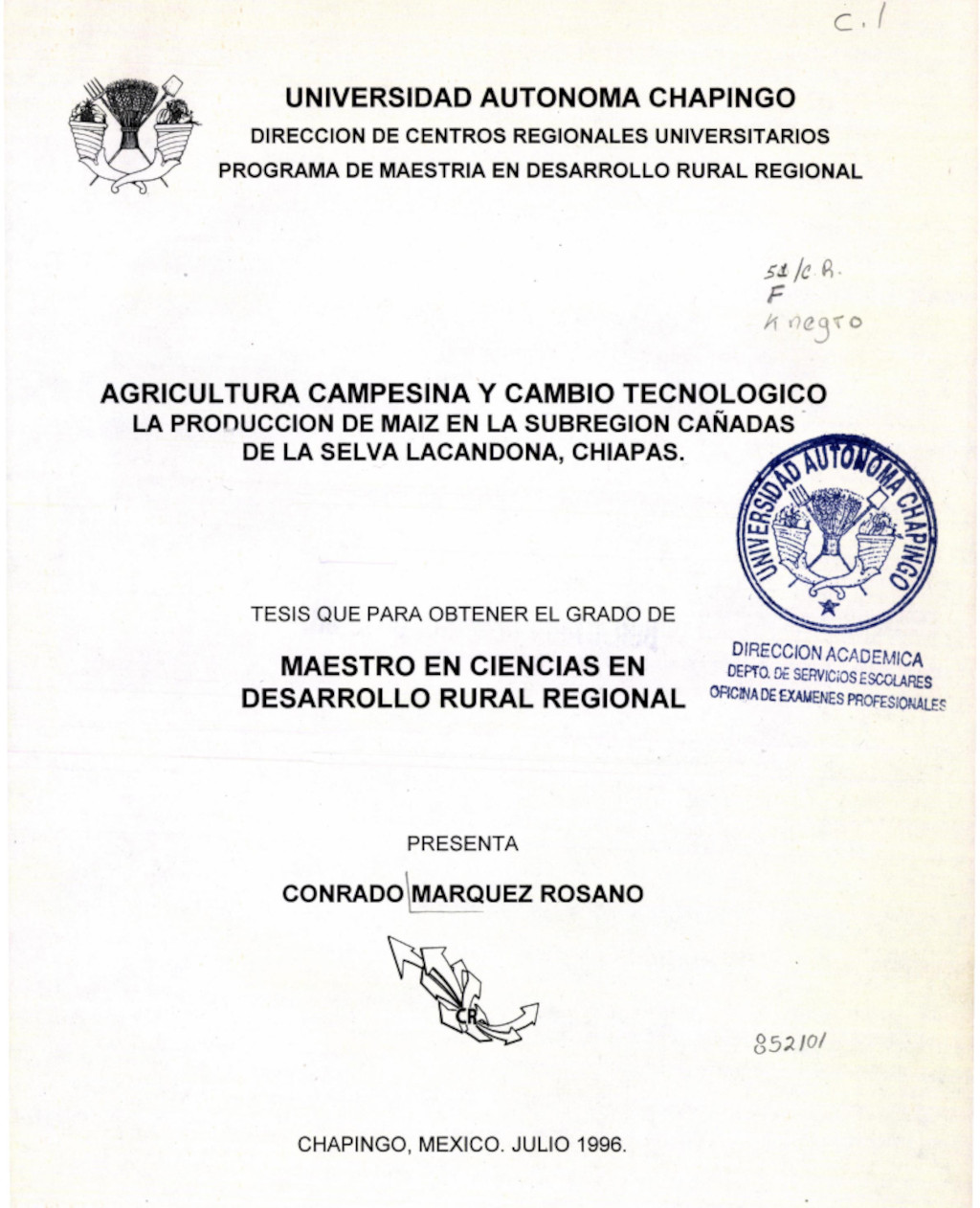 Agricultura campesina y cambio tecnológico la producción de maíz en la subregión cañadas de la Selva Lacandona, Chiapas.