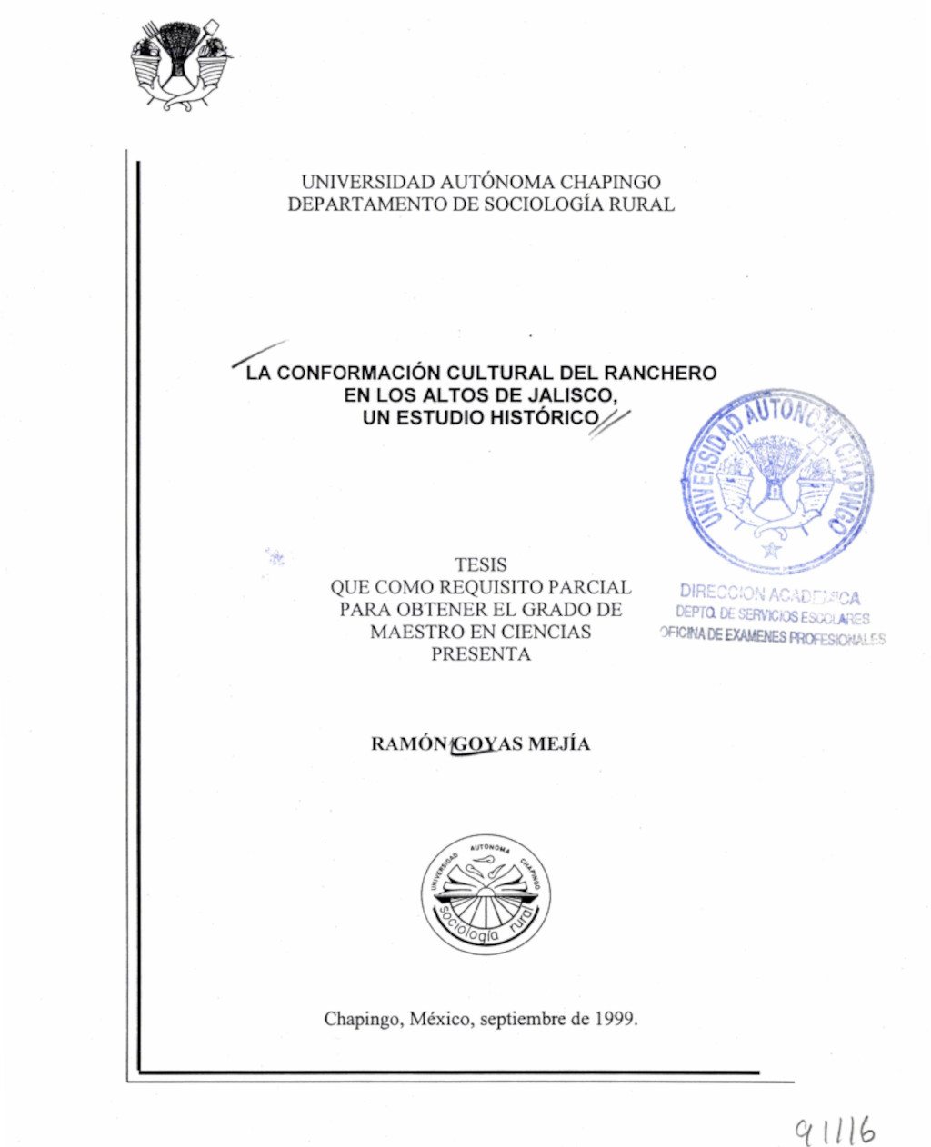 La conformación cultural del ranchero en los Altos de Jalisco, un estudio histórico