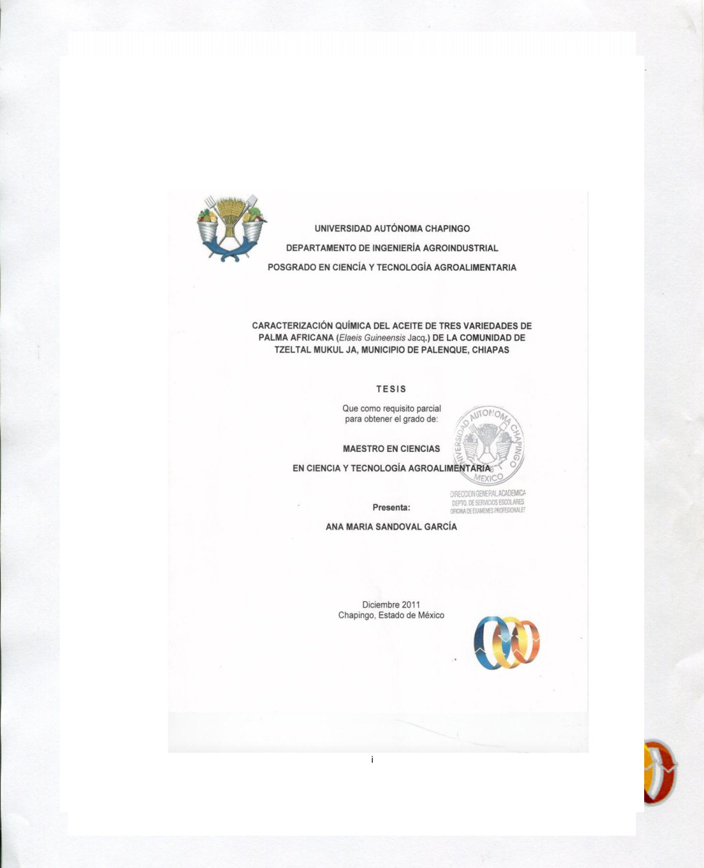 Caracterización química del aceite de tres variedades de palma africana (Elaeis Guineensis Jacq.) de la comunidad de Tzeltal Mukul ja, municipio de Palenque, Chiapas