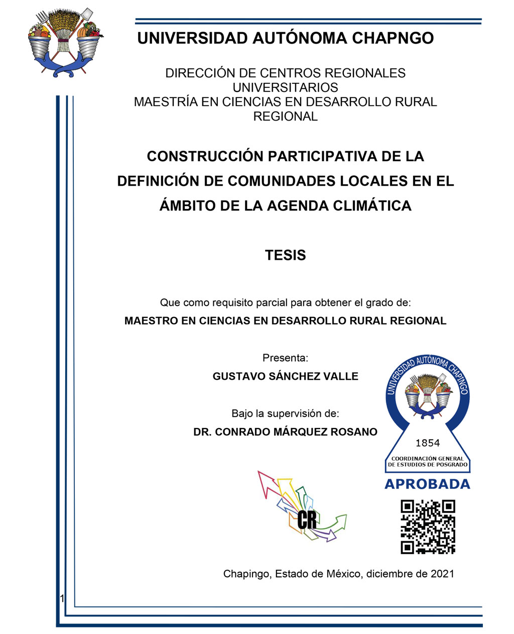 Tesis (Maestría en Ciencias en Desarrollo Rural Regional)
