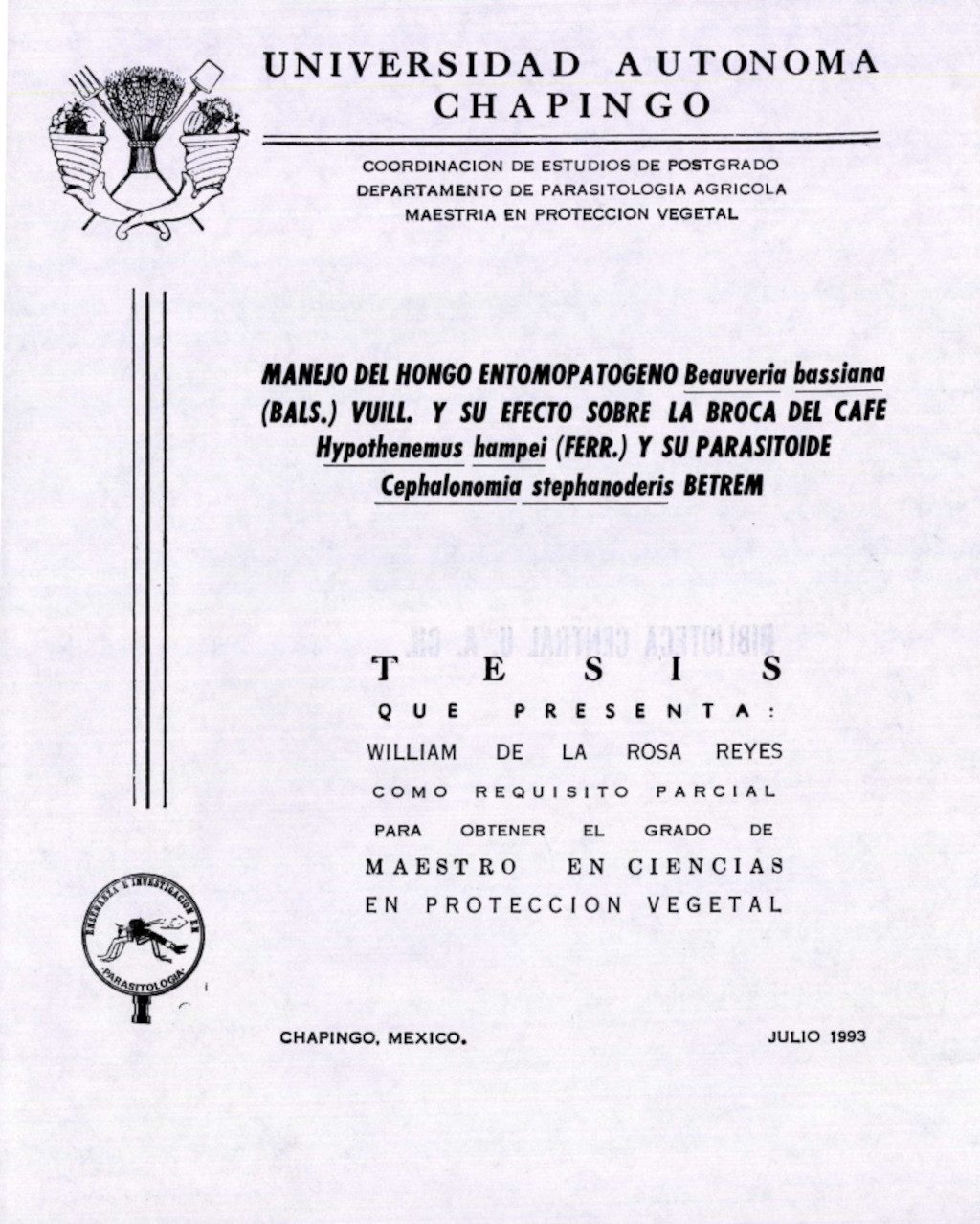 Manejo del hongo entomopatógeno Beauveria bassiana (BALS.) Vuill. y su efecto sobre la broca del café Hypothenemus hampei (FERR.) y su parasitoide Cephalonomia stephanoderis Betrem
