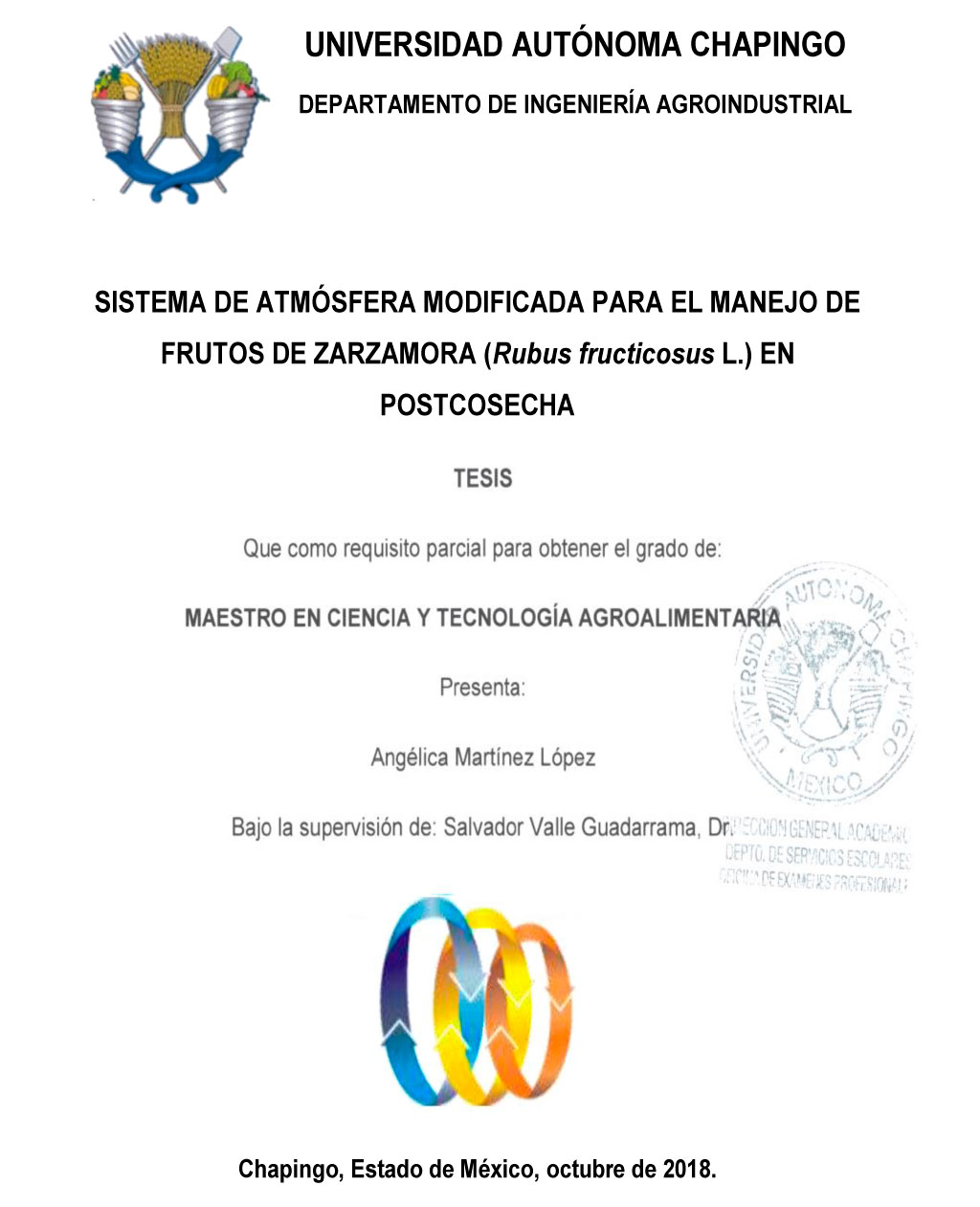 Sistema de atmósfera modificada para el manejo de frutos de zarzamora (Rubus fruticosus L.) en postcosecha