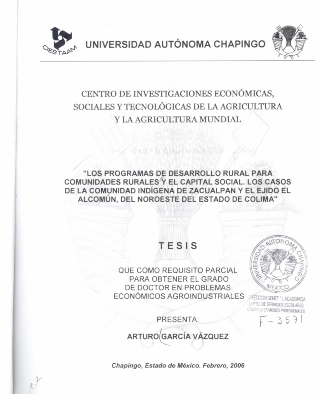 Los programas de desarrollo rural para comunidades rurales y el capital social. Los casos de la comunidad indígena de Zacualpan y el ejido El Alcomún, del Noroeste del Estado de Colima