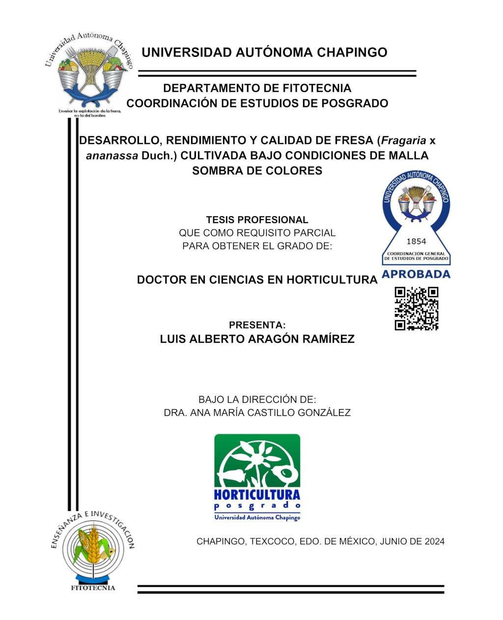 Desarrollo, rendimiento y calidad de fresa (Fragaria x ananassa Duch.) cultivada bajo condiciones de malla sombra de colores