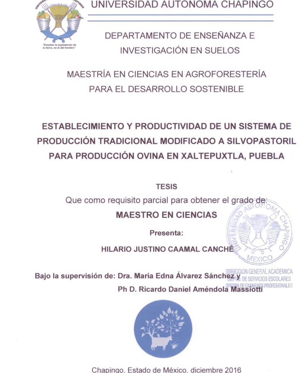 Establecimiento y productividad de un sistema de producción tradicional modificado a silvopastoril para producción ovina en Xaltepuxtla, Puebla