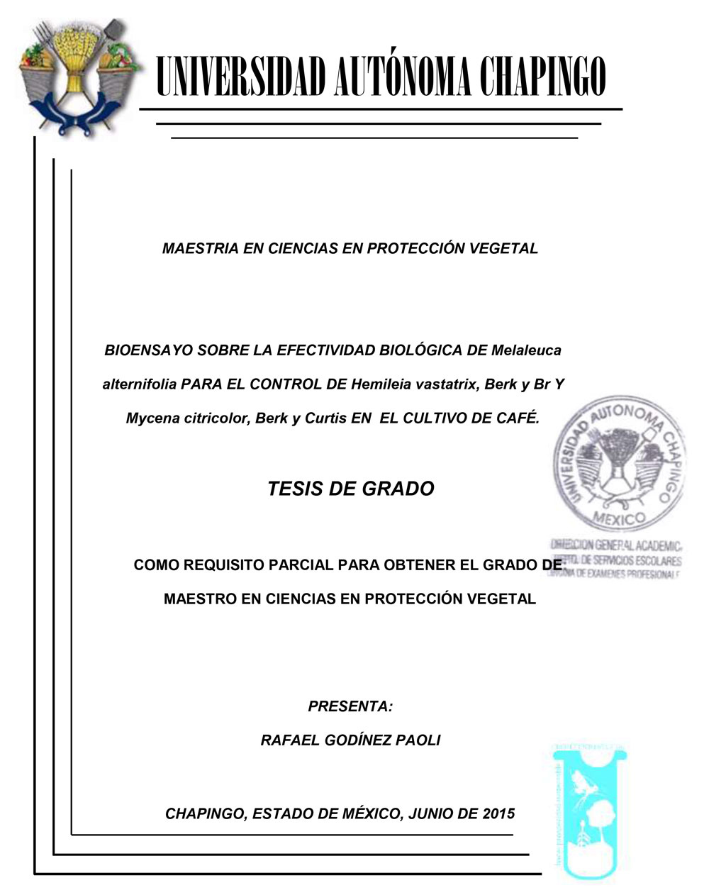 Bioensayo sobre la efectividad biológica de Melaleuca alternifolia para el control de Hemileia vastatrix, Berk y Br Y Mycena citricolor, Berk y Curtis en el cultivo de café.