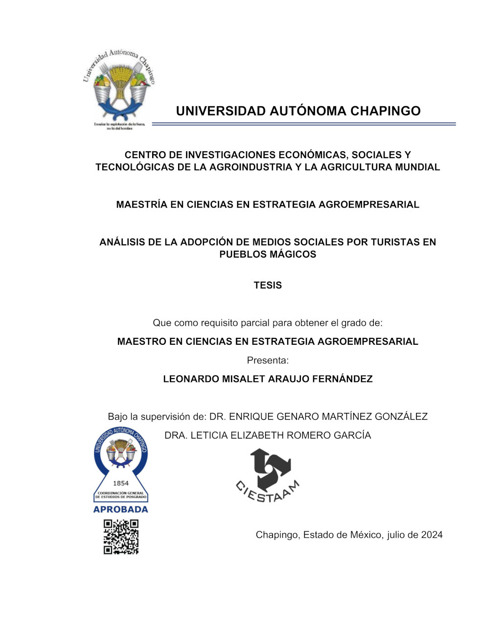 Tesis (Maestría en Ciencias en Estrategia Agroempresarial)