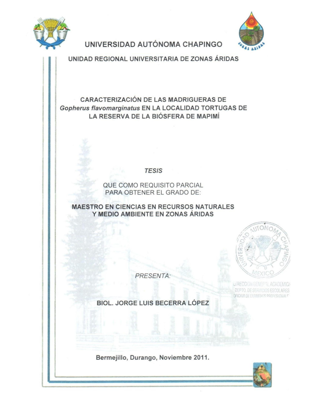 Caracterización de las madrigueras de Gopherus flavomarginatus en la localidad Tortugas de la Reserva de la Biósfera de Mapimí