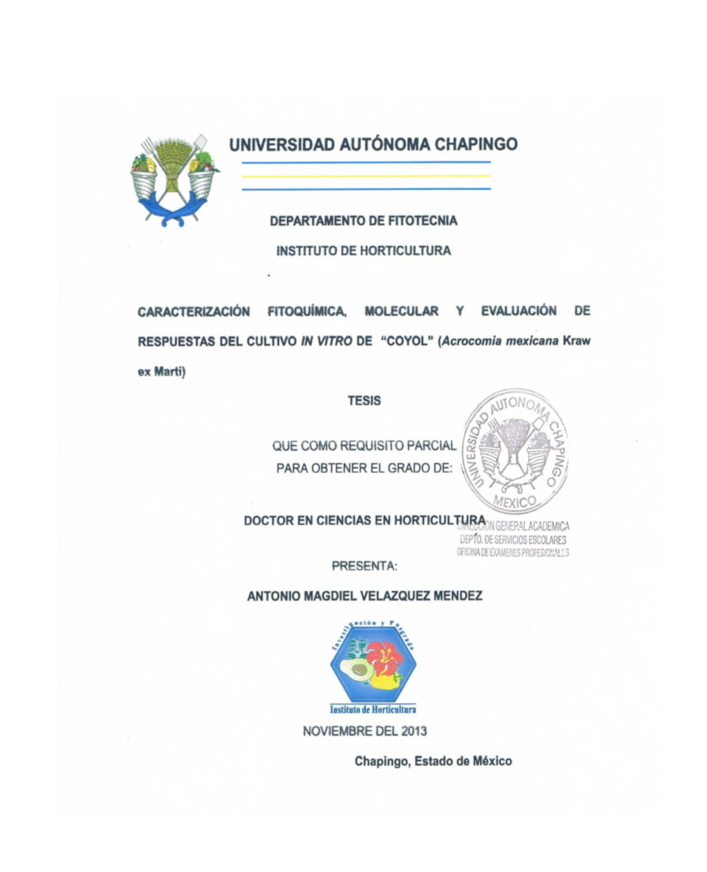 Caracterización fitoquímica molecular y evaluación de respuestas del cultivo In Vitro de "Coyol" (Acrocomia mexicana Kraw ex Marti)