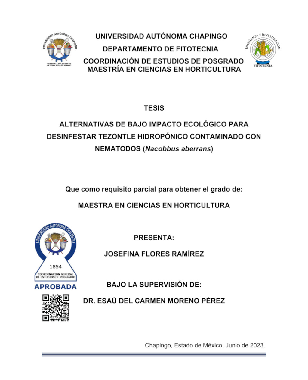 Alternativas de bajo impacto ecológico para desinfestar tezontle hidropónico contaminado con nematodos (Nacobbus aberrans)