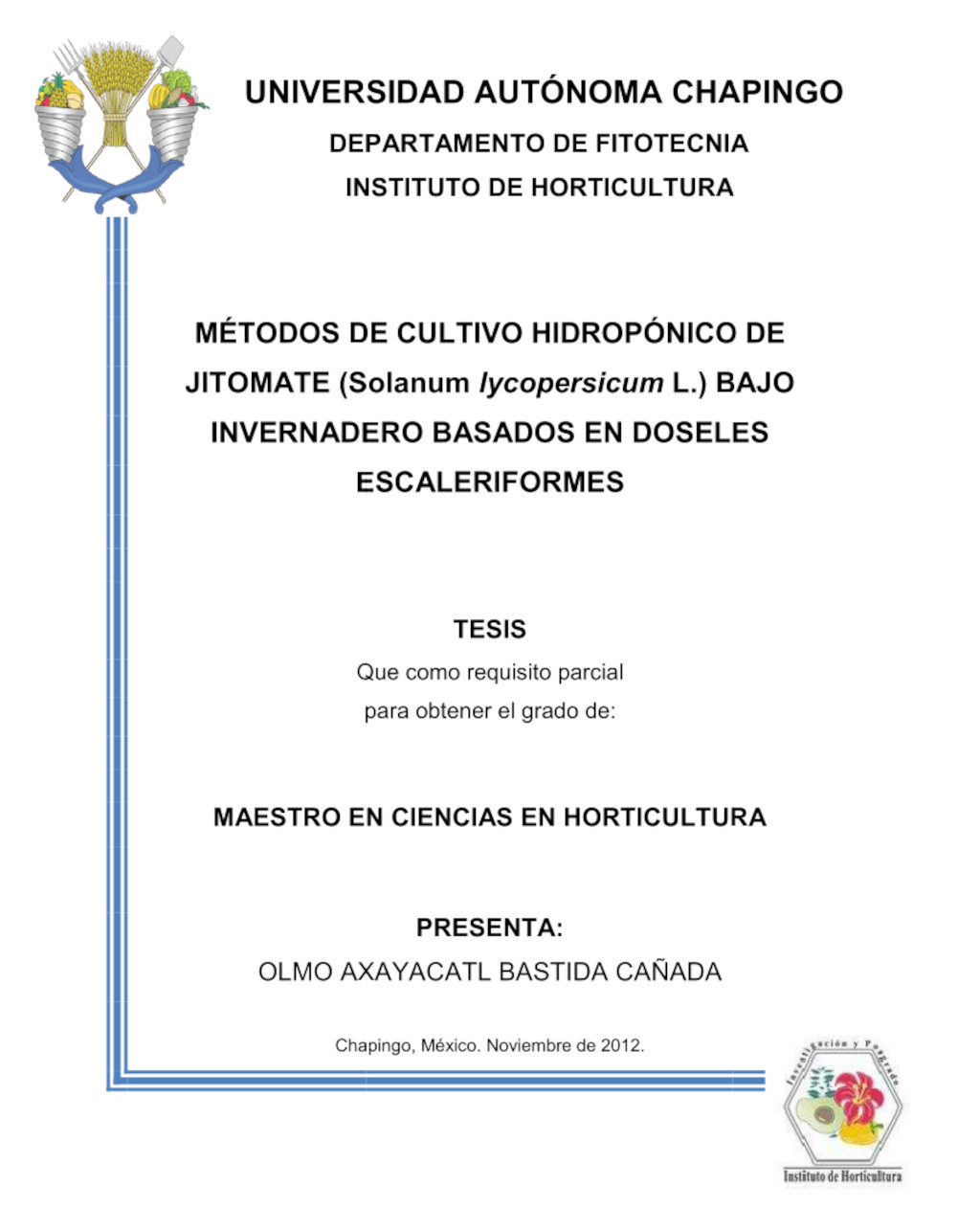 Tesis (Maestría en Ciencias en Horticultura)