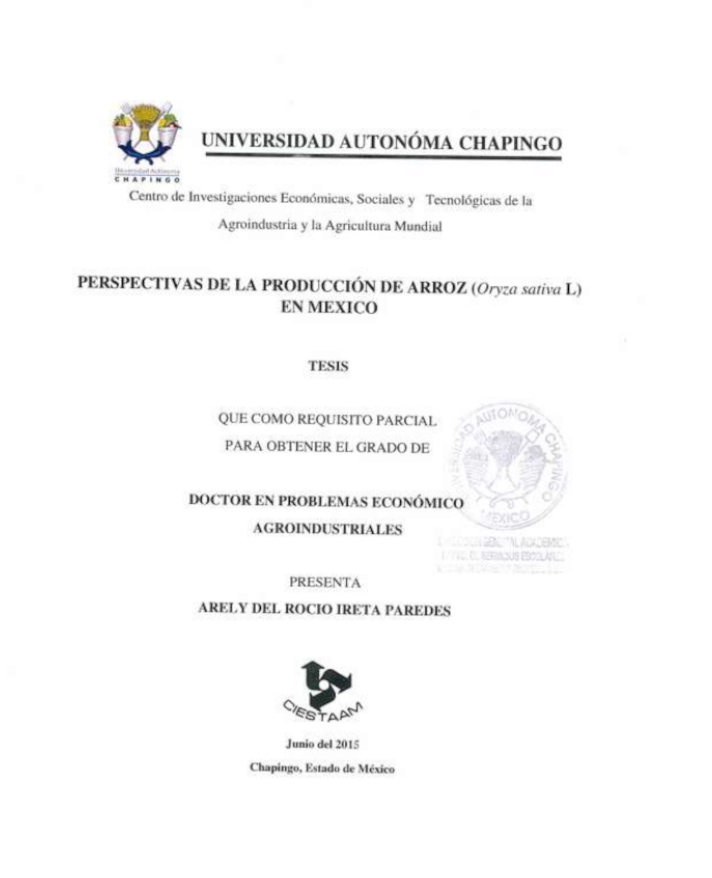Perspectivas de la producción de arroz (Oriza sativa L) en México
