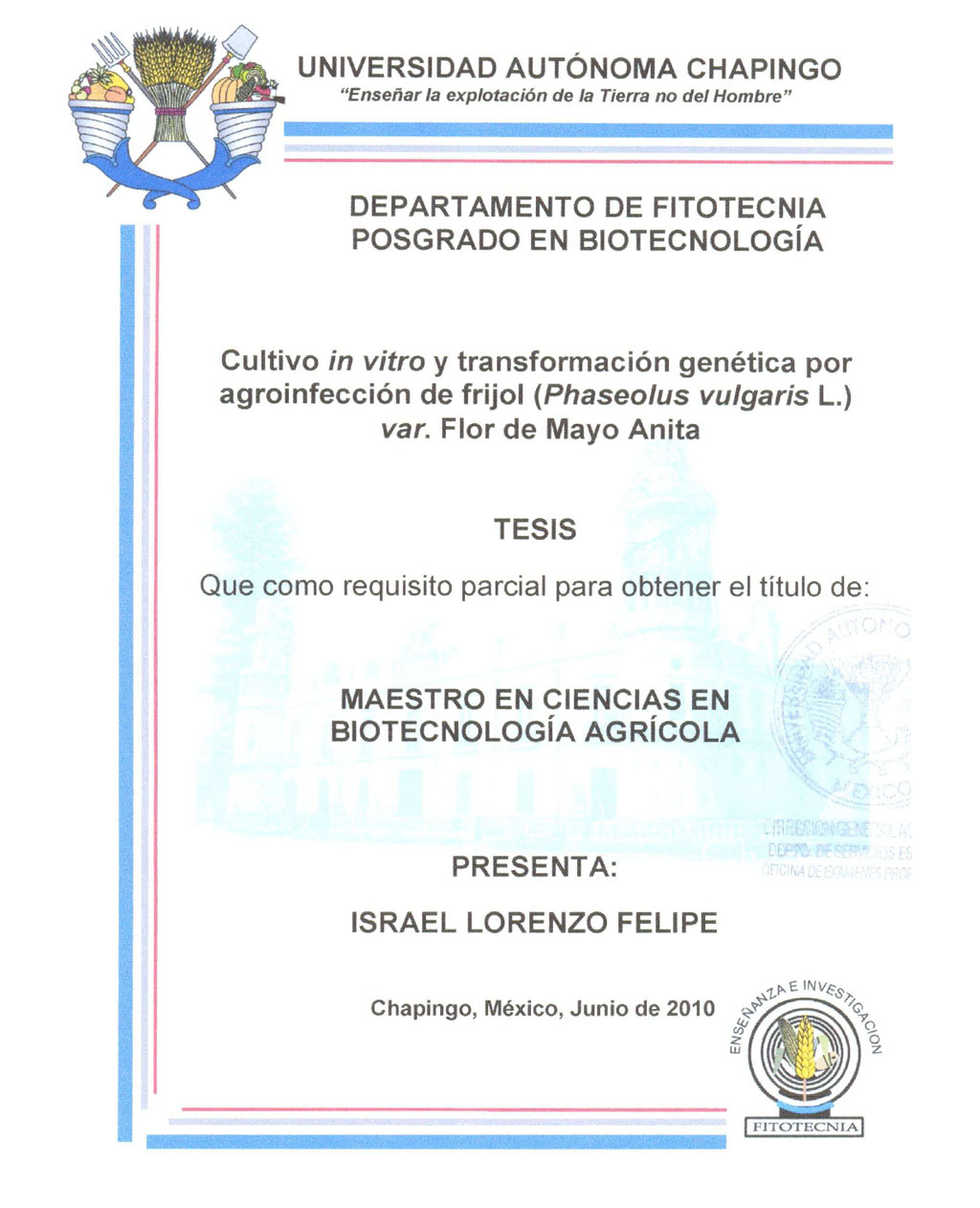 Cultivo in vitro y transformación genética por agroinfección de frijol (Phaseolus vulgaris L.) var. Flor de Mayo Anita