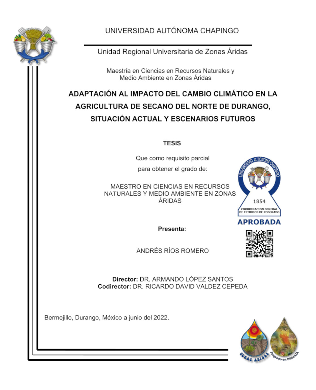 Adaptación al impacto del cambio climático en la agricultura de secano del norte de Durango, situación actual y escenarios futuros
