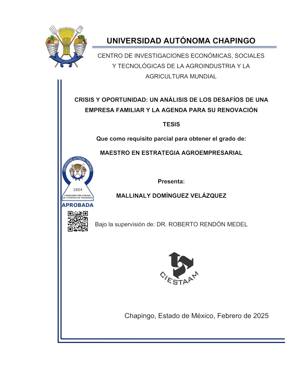 Tesis (Maestría en Estrategia Agroempresarial)