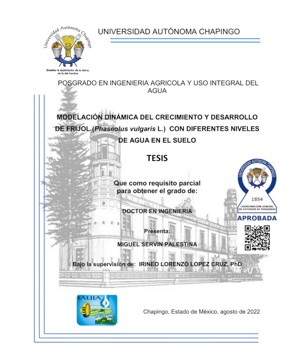 Tesis (Doctorado en Ingeniería Agrícola y Uso Integral del Agua)