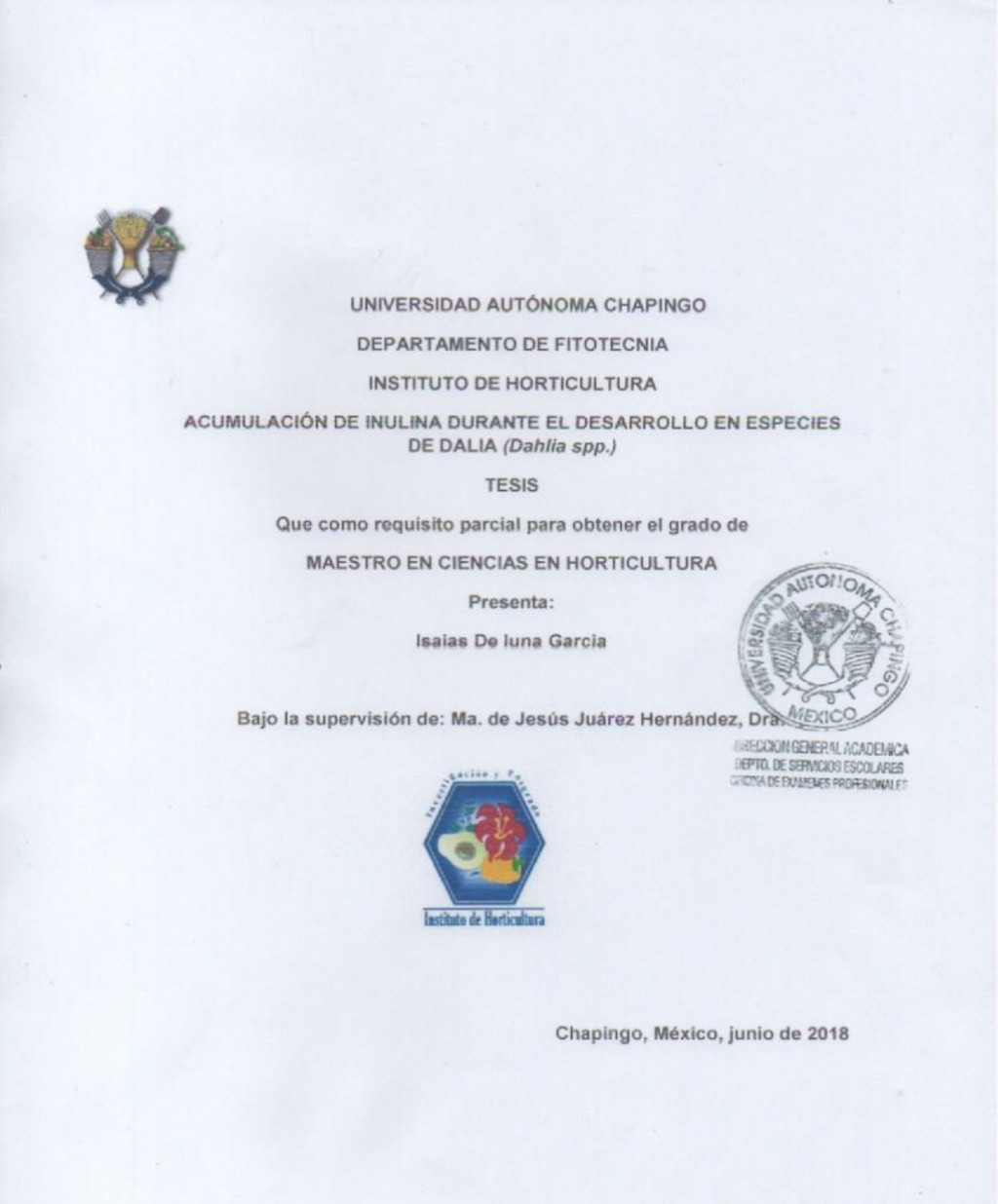 Acumulación de inulina durante el desarrollo en especies de dalia (Dahlia spp.)